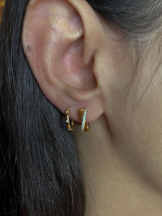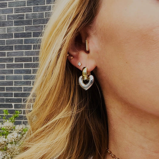 Sold outTwo Tone Mixed Metal Heart Huggies